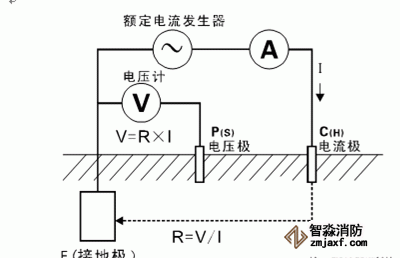條件:必須有兩個(gè)接地棒:一個(gè)輔助地和一個(gè)探測(cè)電極。各個(gè)接地電極間的間隔5至10米。原理是在輔助地和被測(cè)地之間加上電流,測(cè)量被測(cè)地和探測(cè)電極間的電壓降,測(cè)量結(jié)果包括測(cè)量電纜本身的電阻。