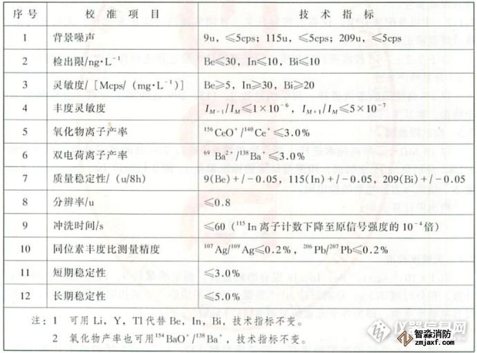 新安裝的儀器的檢定,應(yīng)符合儀器說明書中規(guī)定的計(jì)量要求,其計(jì)量特性應(yīng)優(yōu)于規(guī)程《JJF1159-2006 四極桿電感耦合等離子體質(zhì)譜儀校準(zhǔn)規(guī)范》性能指標(biāo)。使用中和修理后的儀器的檢定,應(yīng)符合中華人民共和國國家計(jì)量技術(shù)規(guī)范《JJF 1159-2006 四極桿電感耦合等離子體質(zhì)譜儀校準(zhǔn)規(guī)范》中規(guī)定的性能指標(biāo)-表1。