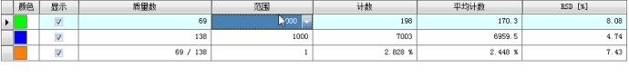 實(shí)測(cè)指標(biāo):雙電荷產(chǎn)率69Ba+/138Ba+=2.448%≤3.0%