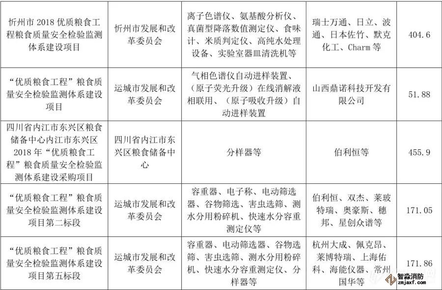 “優質糧食工程”儀器相關中標項目列表(1月1日至6月30日)