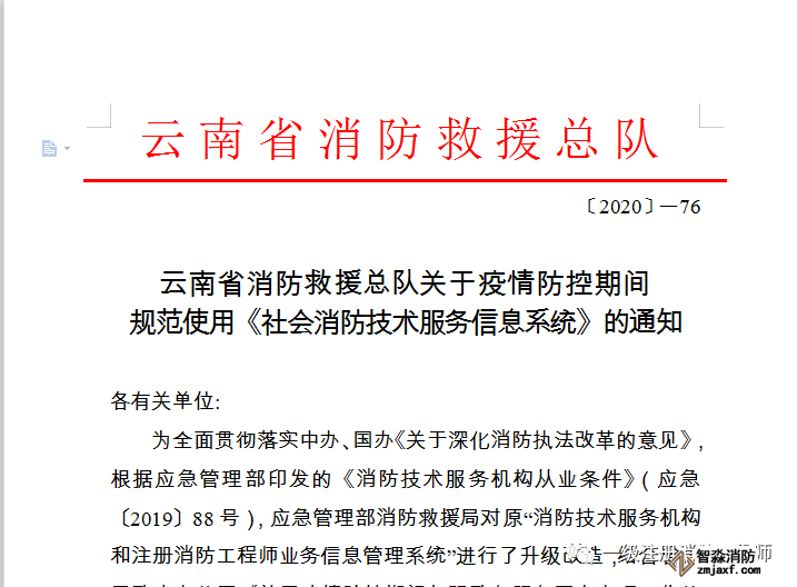 注:上述通知事項,為疫情防控期間規范使用“社會消防技術服務信息系統”的過渡措施,疫情結束后,如辦事流程有調整或變化,請以云南省消防救援總隊最新發布的通知為準。