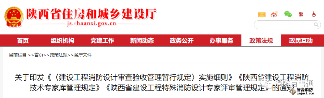 陜西實施住建部第51號令,印發(fā)了《〈建設工程消防設計審查驗收管理暫行規(guī)定〉實施細則》、《陜西省建設工程消防技術專家?guī)旃芾硪?guī)定》、《陜西省建設工程特殊消防設計專家評審管理規(guī)定》三份文件。