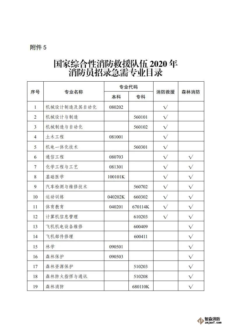 5.國(guó)家綜合性消防救援隊(duì)伍2020年消防員招錄急需專業(yè)目錄