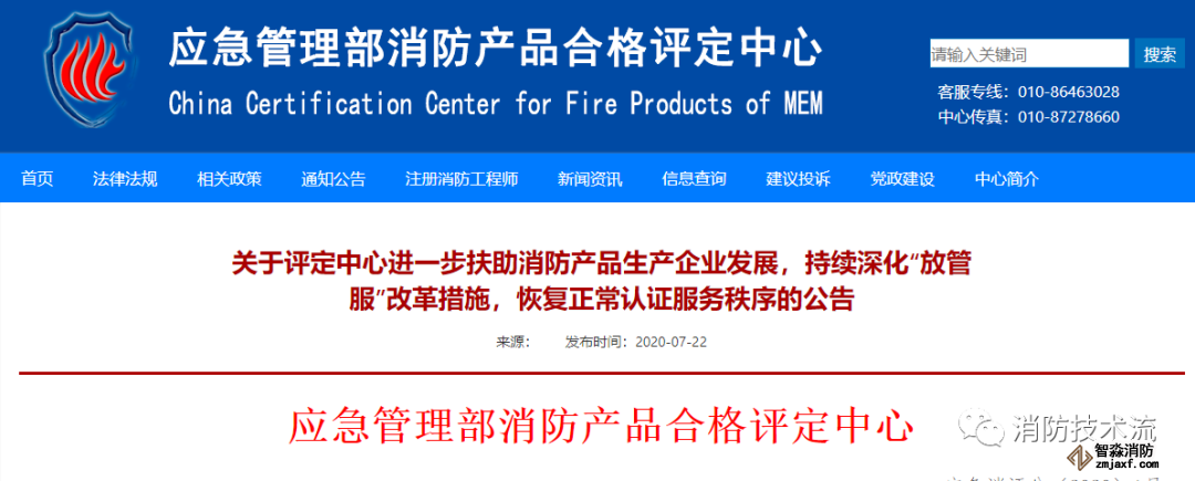 應(yīng)急管理部消防產(chǎn)品合格評定中心8月1日起恢復(fù)正常認證服務(wù)秩序