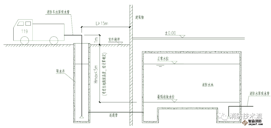 1)消防水池設置有取水口或取水井的(供消防車取水的消防水池),觀察取水口或取水井的吸水高度不大于 6.0m。